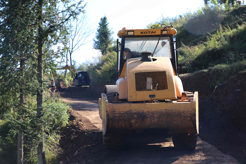 近日,在云南富源县中安街道龙潭社区上白岩至冲头的农村公路上,工人们正忙着支砌挡墙,一台台挖掘机不停地转动,压路机在路面上来回碾压着路面,整条道路上呈现出一片热火朝天的繁忙景象。