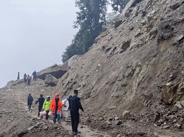 经过3天的不懈努力,5月6日,塌方点清理出一条简易人行便道,根据贡山县委县政府工作安排,指挥部和贡山公路分局现场保通人员对滞留人员开展两头接送,在塌方点往返多次帮助游客运送行李,面对不时滚落的浮石,他们冲在最前面,成功转移滞留独龙江乡人员两批次共226人。
