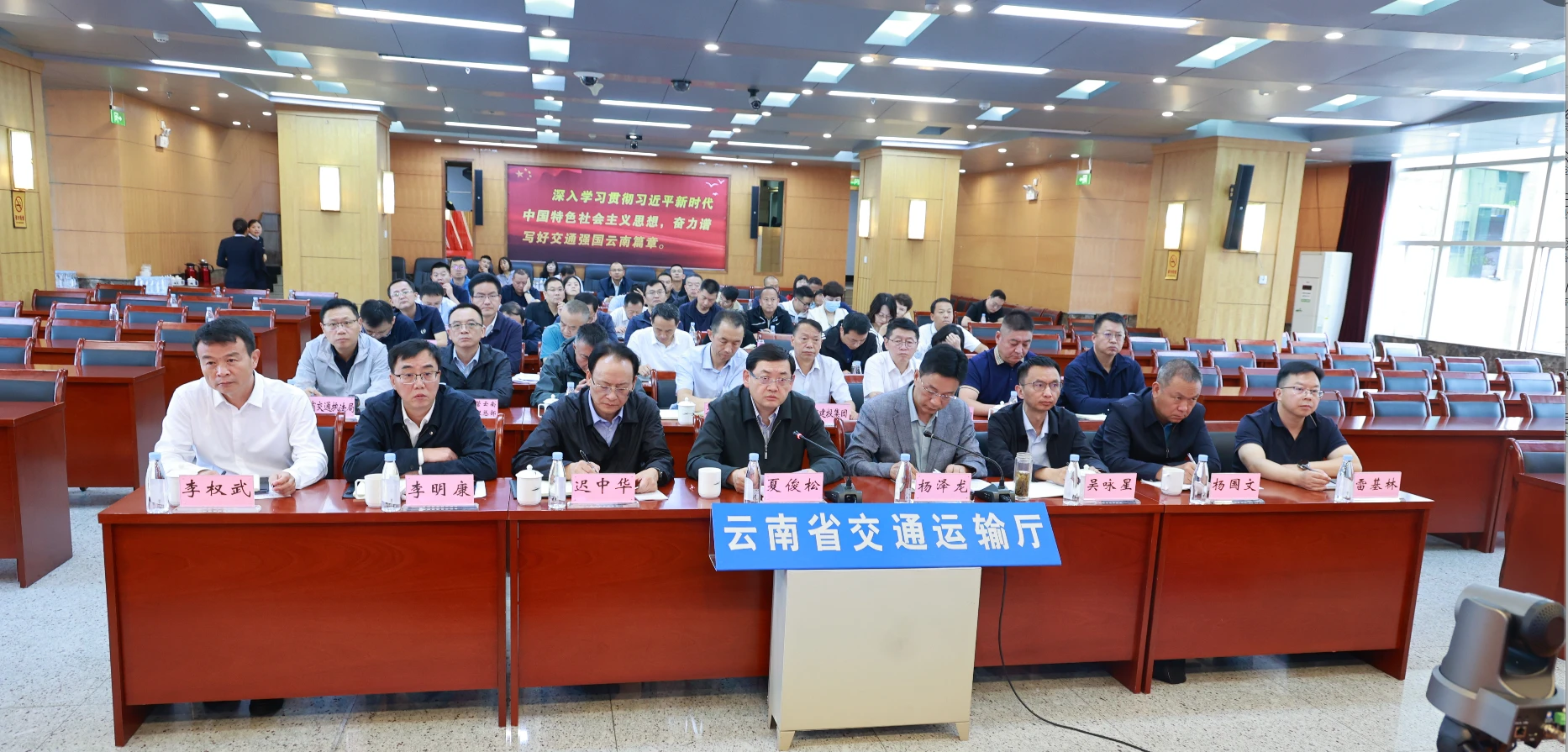 会议以视频形式召开,省交投集团、省建投集团、中国铁路昆明局集团有限公司、云南航产投集团、中交资管云南区域管理总部、山东高速云南公司、驻厅纪检监察组、厅属各单位、厅机关各处室主要负责同志在主会场参会;各州(市)交通运输局,重点企业、重点建设项目负责人在分会场参会。