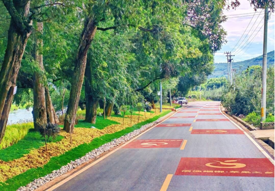 各地涌现出一批特色鲜明的绿美公路。文化与生态共生,宁洱至那柯里公路以凤凰树为视觉亮点,打造茶马文化走廊;文山机场路以蓝花楹营造浪漫氛围,成为游客打卡热点;澄江江川环湖公路以云南樱花勾勒春日盛景,营造“车行花海中”的独特体验;G553蒙(自)元(阳)线打造了长达53.43公里的民族文化长廊,公路挡土墙被改造为“民族文化墙”,哈尼梯田农耕场景与傣族制陶技艺交相辉映,成为通往世界遗产哈尼梯田的文化纽带。产业与交通相融,G323瑞清线打造紫白绿三色景观带,三角梅与葱兰的搭配与路旁荷田相映成趣,实现“修一条路、造一片景、富一方百姓”的良性循环;昭通G247线洒渔至靖安公路通过养护提升工程,不仅解决了4000余名师生的“出行难”问题,更让当地苹果实现“早上摘果、中午到昆明”,鲜笋加工品走向全国,成为便民利民的“连心路”。尤其是怒江美丽公路,被央视推荐为全国12条“最美自驾路”之一,并入选全国首批交旅融合发展典型案例;小沙坝服务区成为国家AAAA级公路服务景区,实现“交通+旅游”深度融合。