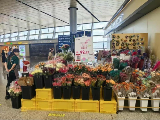 “绿美+文旅”亮点纷呈,昆明机场聚焦“绿美+花卉经济”,以“花开长水”品牌为引领,打造“云花”主题打卡点,推出鲜花即时零售服务。通过在候机楼灵活配置销售点位、优化服务体验,鲜花销售从“试水温”到“火出圈”——日均销售额从不足5000元飙升至3.6万元,2025年“情人节”单日突破14.98万元,一年累计营收超2300万元,实现了“美化环境—旅客打卡—商业增收”的良性循环,让绿美机场真正成为“流量入口”和“经济引擎”。