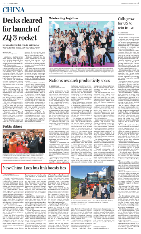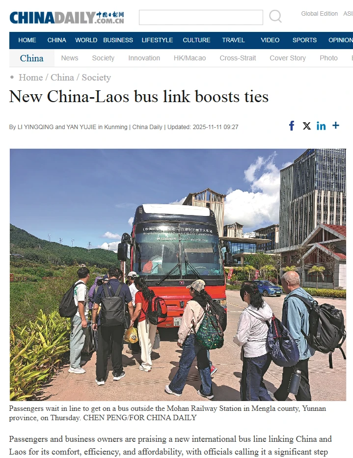 【China Daily】中国日报外文版丨中老首条公交化国际客运班线开通