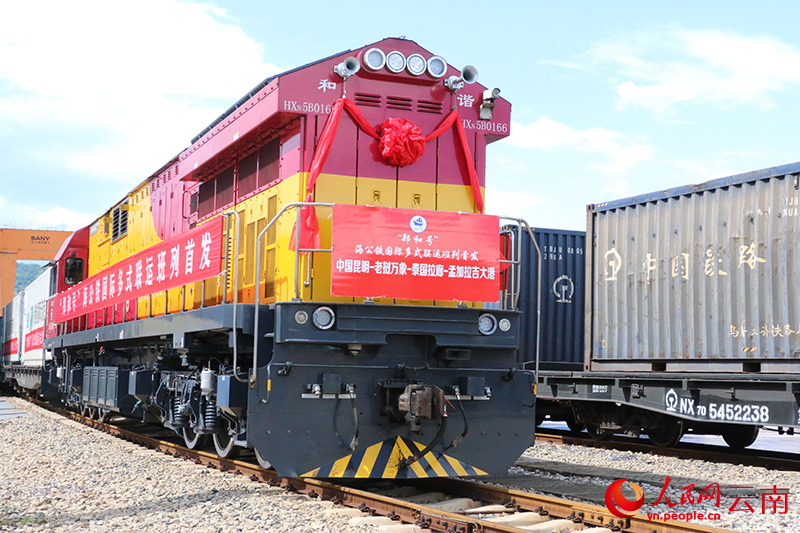[人民网-云南频道]“郑和号”海公铁国际多式联运班列首发