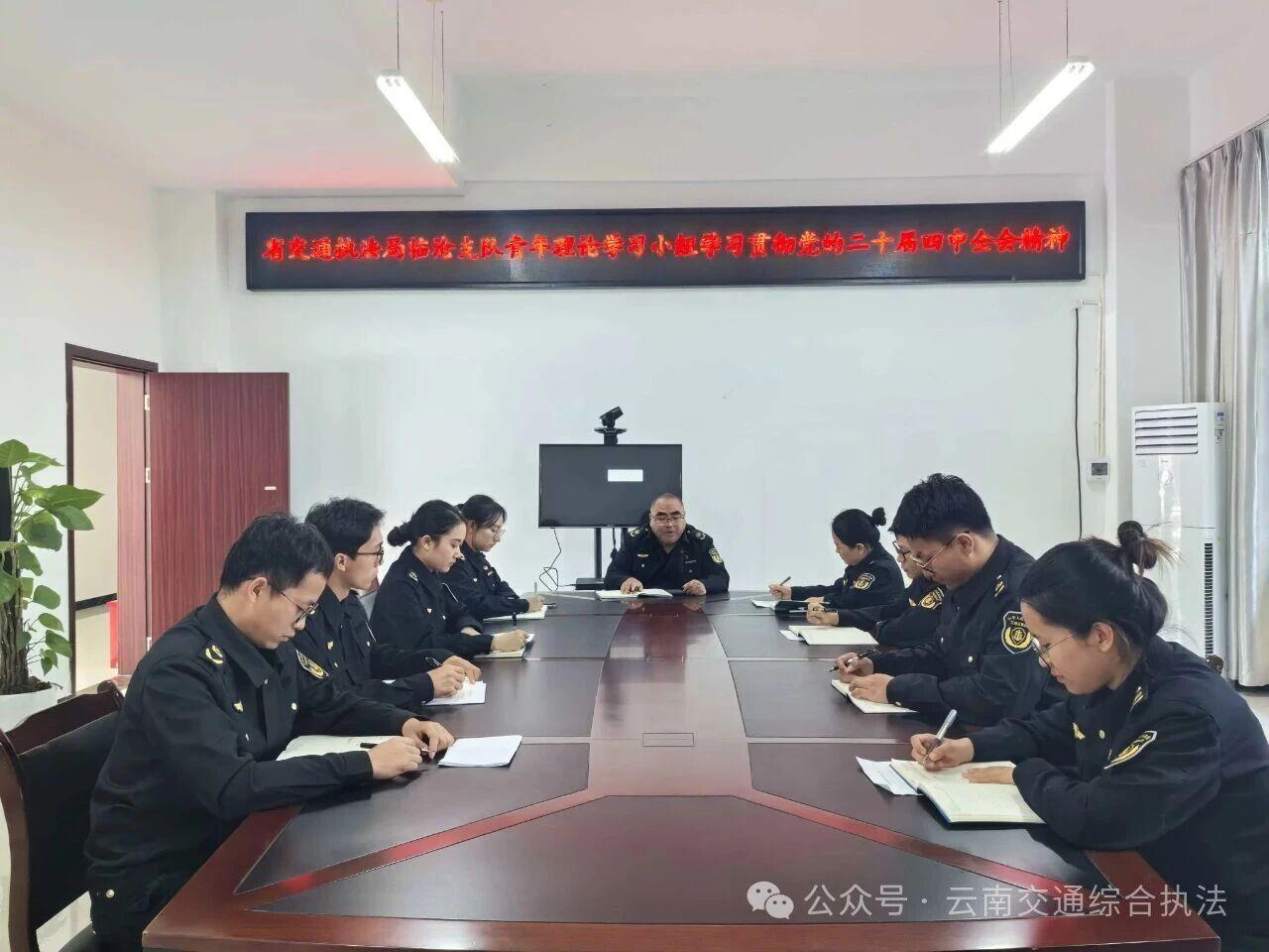 德宏支队制定分阶段学习计划,近期开展专题学习会5场次。组织团员青年在“百吨王”治理专项行动夜间巡查、卡点值守等任务中锻炼成长,各大队学用结合打造实践载体,推动全会精神在交通执法一线实践落地。