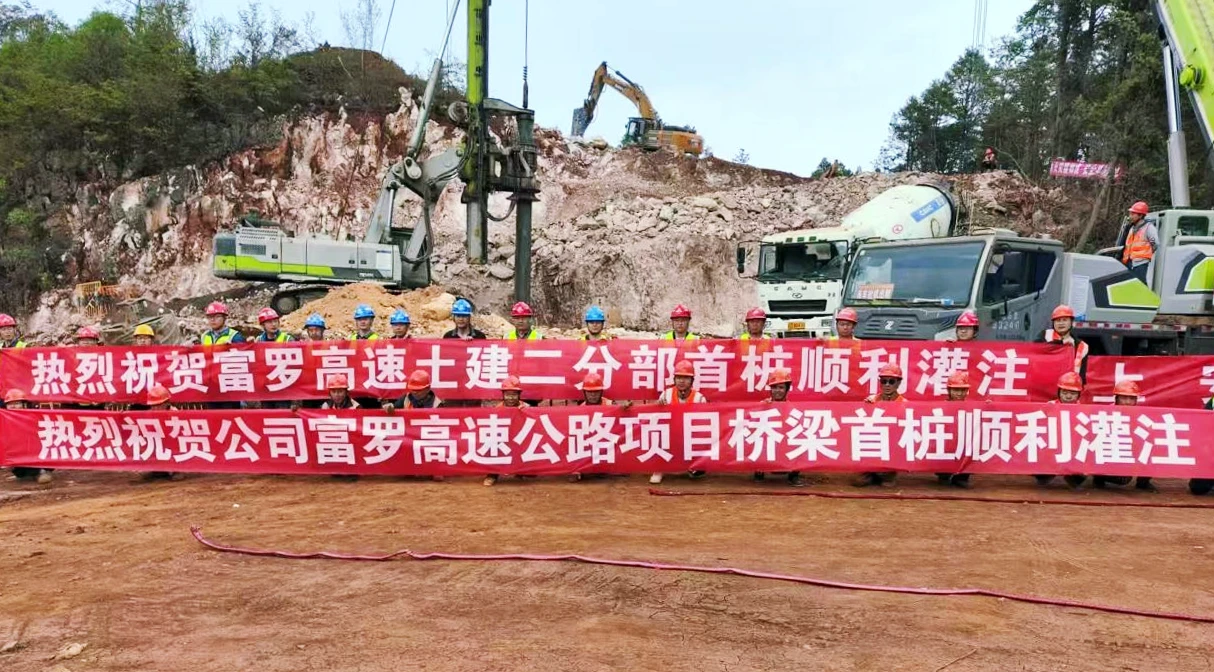 4月28日,富源至罗平高速公路项目凤羽互通2号大桥首颗桩基顺利浇筑完成。