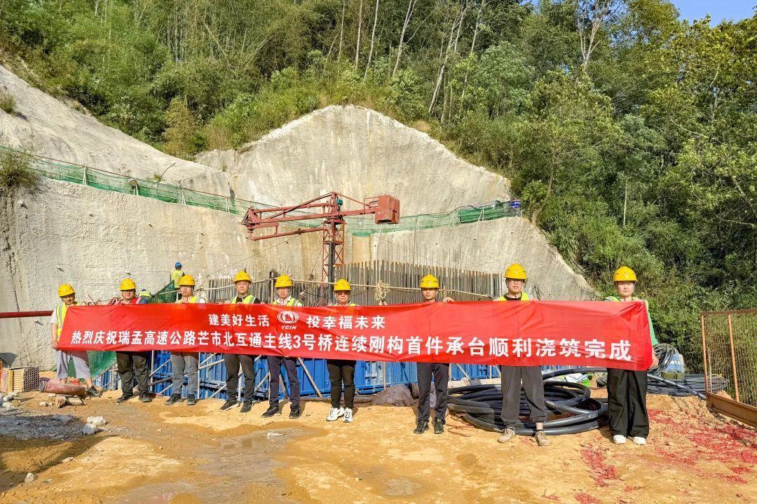 4月26日,瑞孟高速公路项目芒市北互通主线3号桥连续刚构首件承台顺利完成浇筑。