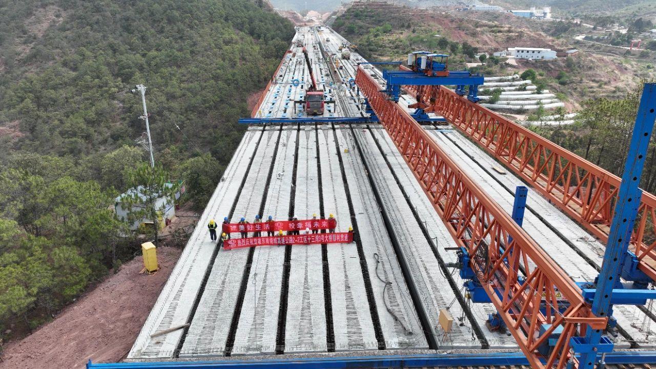 4月21日,古宁高速岩脚2号桥T梁架设完成。