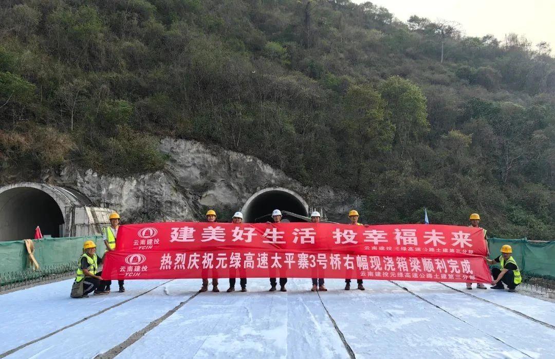 4月24日,元绿高速土建三分部太平寨3号大桥右幅现浇箱梁顺利浇筑完成。
