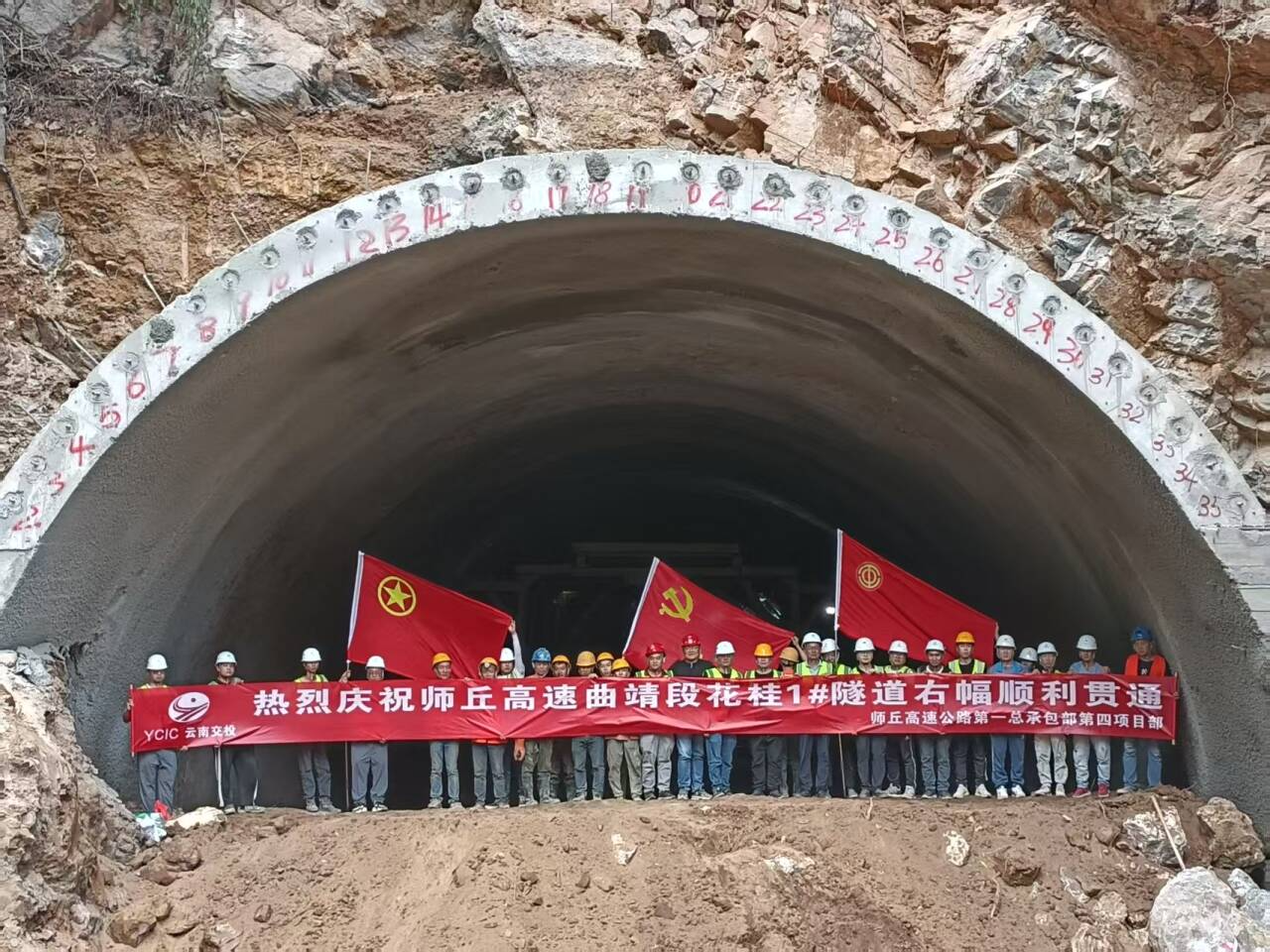 4月21日,师丘(曲靖段)高速公路花桂1号隧道右幅顺利贯通。