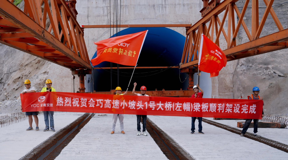 7月15日,会巧高速公路关键控制性工程——小坡头1号大桥(左幅)梁板顺利架设完成。