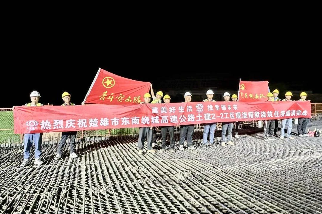 7月12日晚,楚雄市东南绕城高速公路项目楚雄南互通D匝道2号桥现浇箱梁浇筑完成,标志着2-2工区所有现浇箱梁施工任务圆满完成。