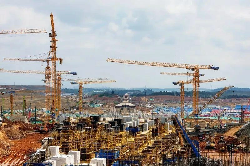 渝昆高铁长水机场隧道进口端塔吊林立,施工正酣 陈畅 摄