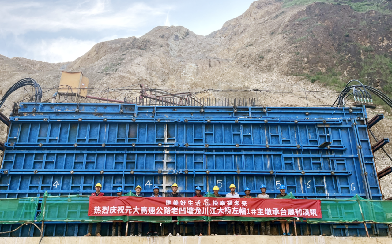 8月5日,元大高速公路控制性工程——老凹塘龙川江大桥首个大体积承台顺利完成浇筑。