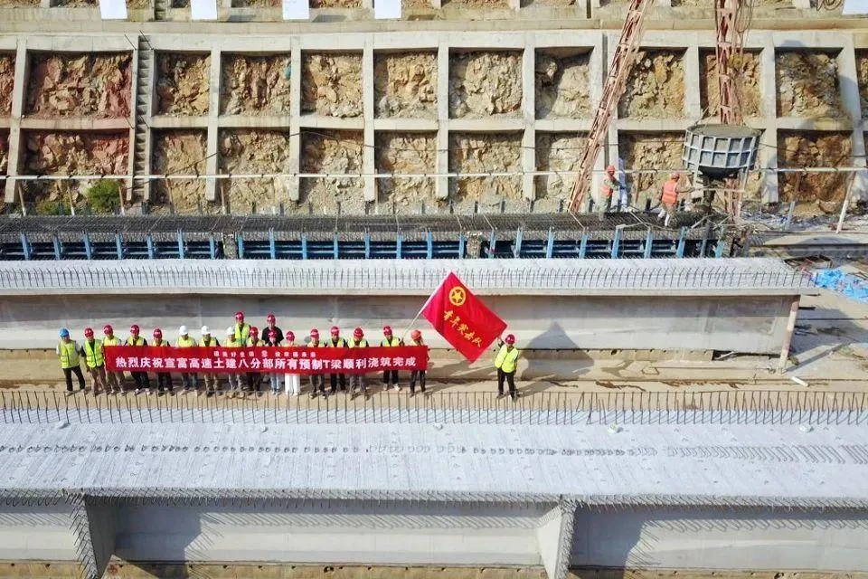 7月29日,宣富高速项目土建八分部顺利完成全部T梁的浇筑工作。至此,项目主线T梁预制任务完美收官。
