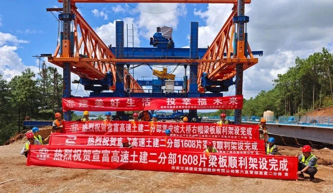 8月17日,宣富高速土建二分部1608片梁板全部架设完成。