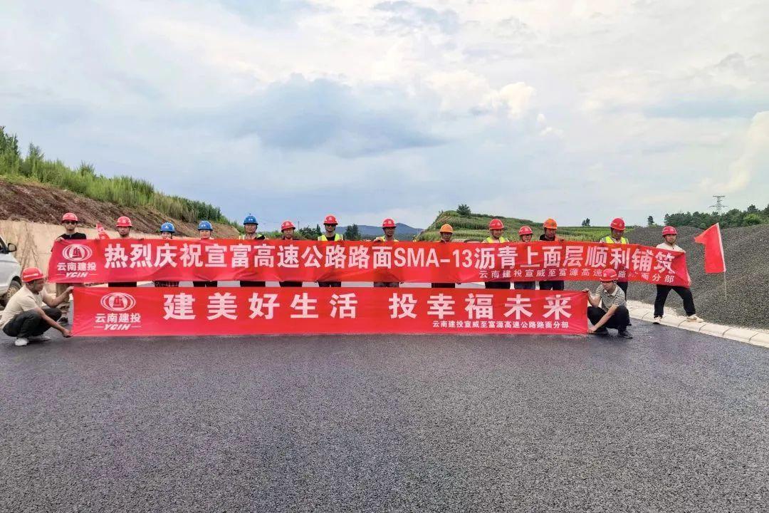 8月8日,弥玉高速公路(华宁段)沥青上面层试验段顺利完成铺筑。