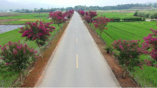 道路延伸之处,生机与希望随之铺展。清晨,勐约乡的阿昌族妇女骑三轮车沿硬化村道,将山菌、鲜笋运往集市,颠簸泥泞已成过去;放学铃响,孩子们沿紫薇盛开的公路飞驰,洒落一路笑声;樱花与斑色花点缀的公路旁,摩托车满载瓜果驶向远方,引擎声里洋溢着对生活的热望。