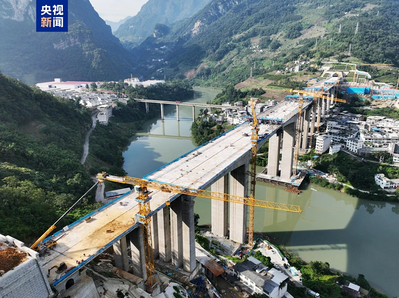 9月17日,渝昆高铁盐津南站白水江四线特大桥顺利合龙,大桥既是跨越天堑连通川滇的桥,也是渝昆高铁盐津南站的一部分,大桥合龙标志着桥隧占比高达87.4%的渝昆高铁建设取得关键性突破,为全线按期建成通车奠定了坚实基础。