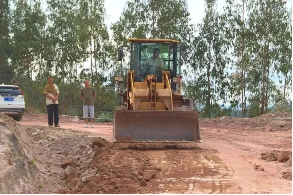 顺着机器轰鸣声看去,刚硬化好的水泥公路上,挖掘机和装载机正在来回穿梭,进行硬化路面两侧土路肩培土作业。不远处,村里的群众正在清扫路面卫生。