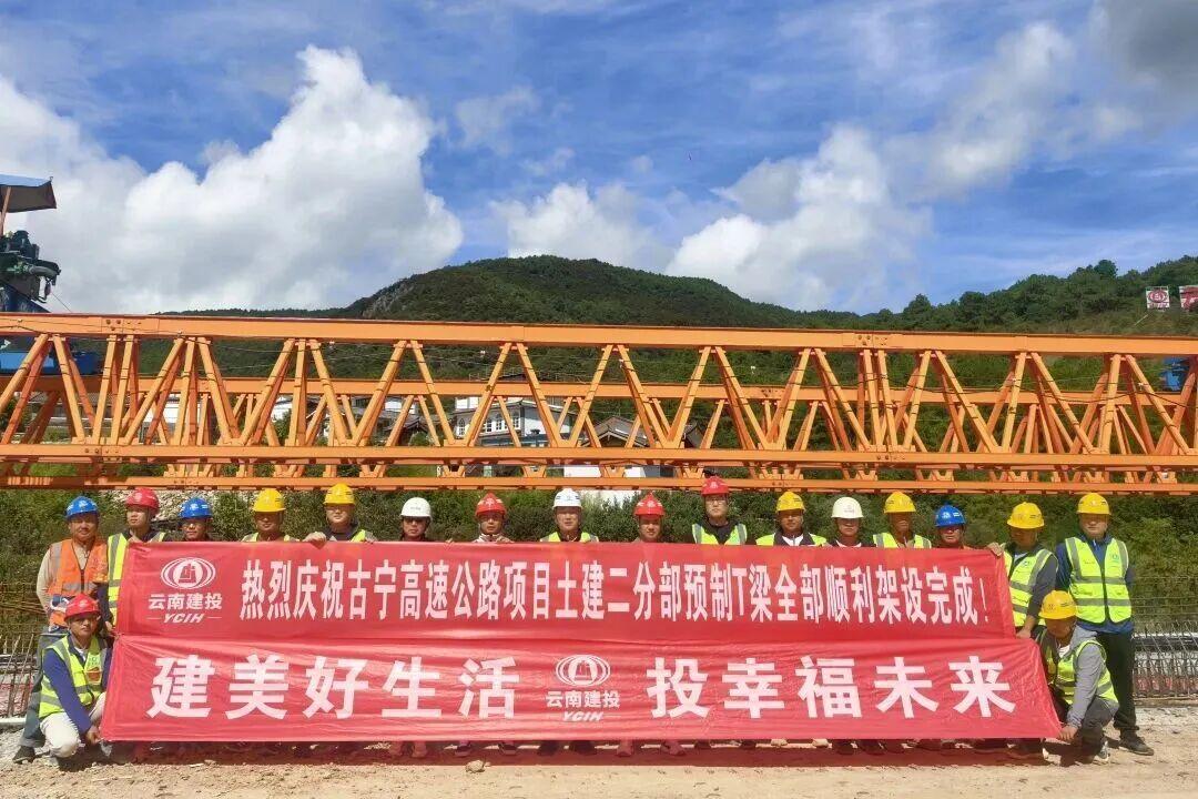 10月12日,随着松云村2号桥右幅9-4#T梁精准落位,古宁高速公路项目土建二分部全部T梁架设完成,分部桥梁工程全面进入桥面系施工阶段。