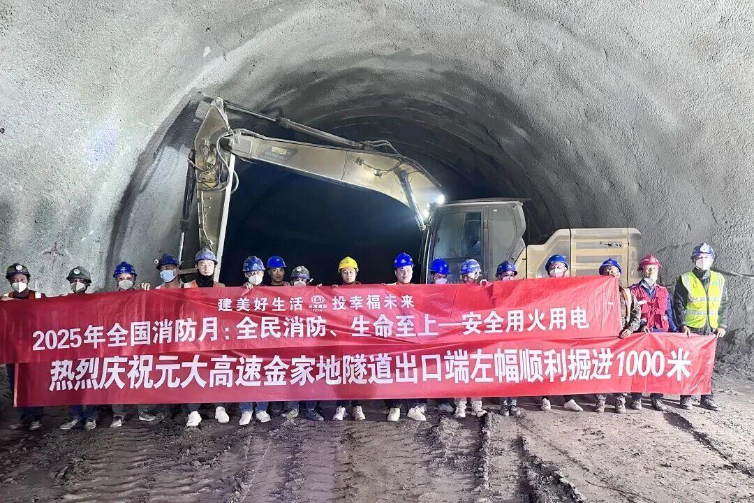 近日,元大高速金家地隧道出口端左幅顺利达成1000米掘进目标,与此前的右幅形成“双线千米”突破。