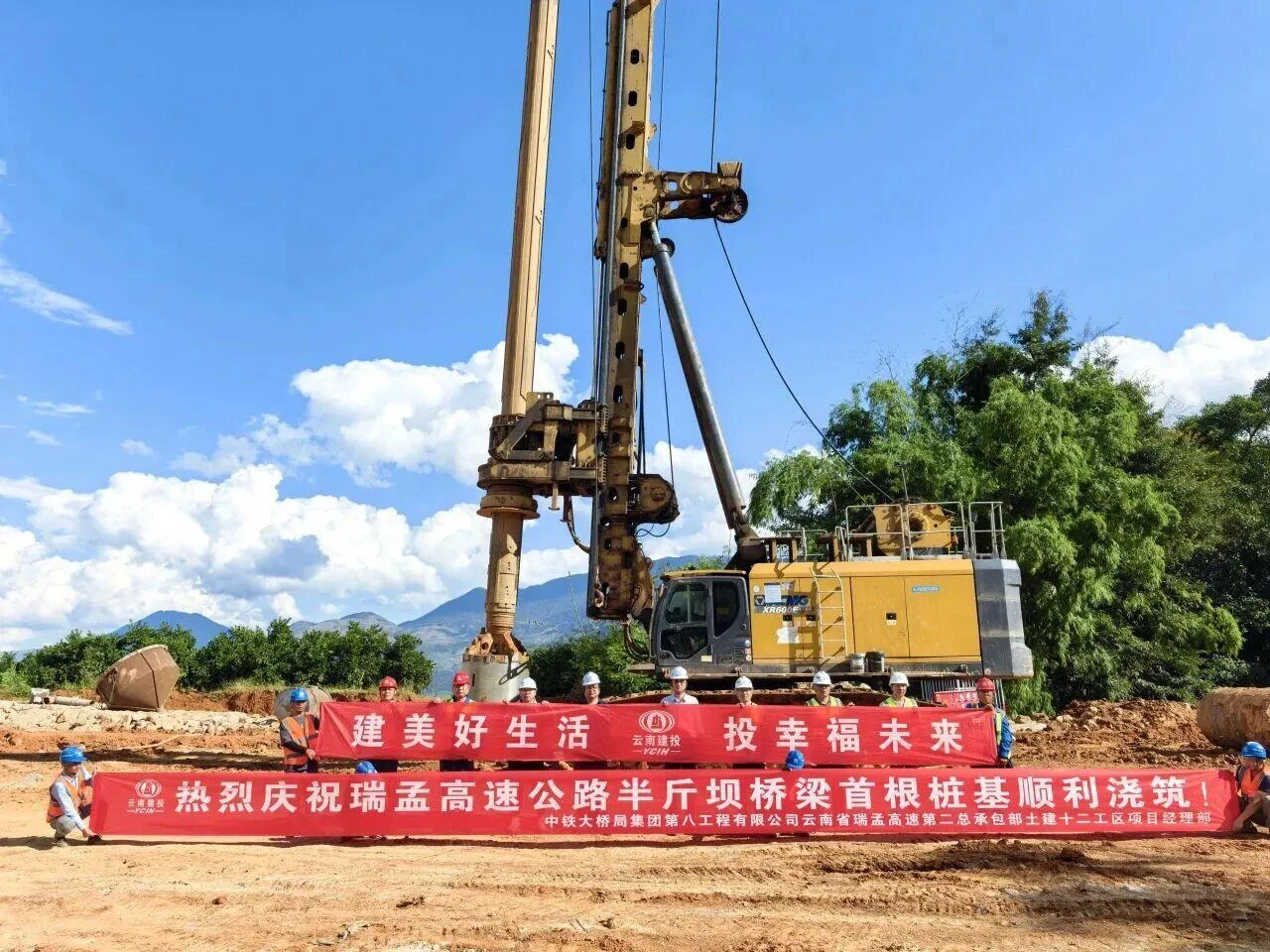 11月21日,瑞孟高速公路土建十二工区半斤坝2号大桥首根桩基顺利完成浇筑,桥梁工程施工正式启动。