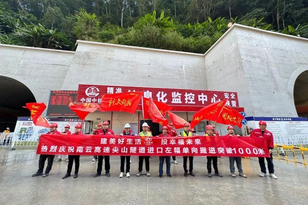 11月18日,国高网G5612大理至临沧高速公路南云段尖山隧道进口左幅单向掘进成功突破1000米大关。