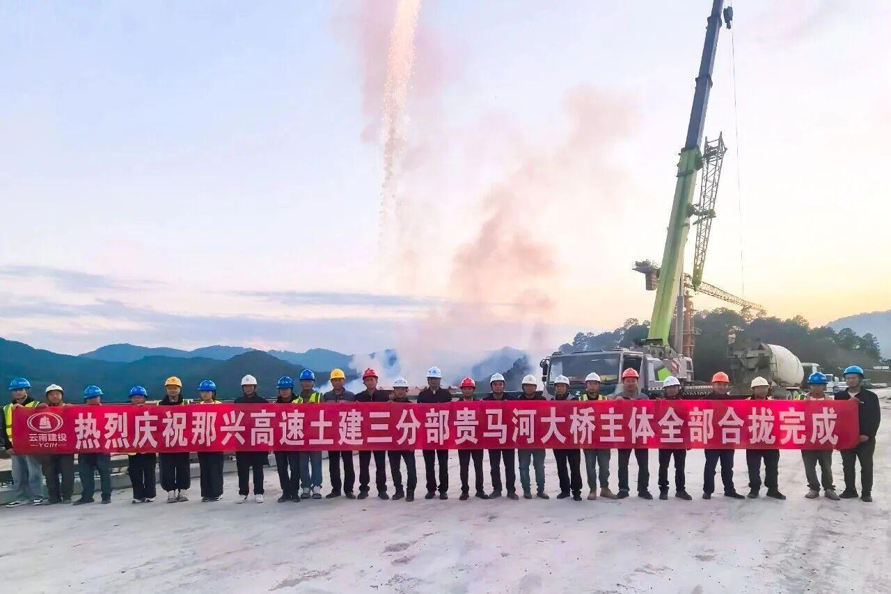 近日,那兴高速公路项目控制性工程——贵马河大桥左幅中跨顺利合龙,该桥主体结构实现全幅贯通。