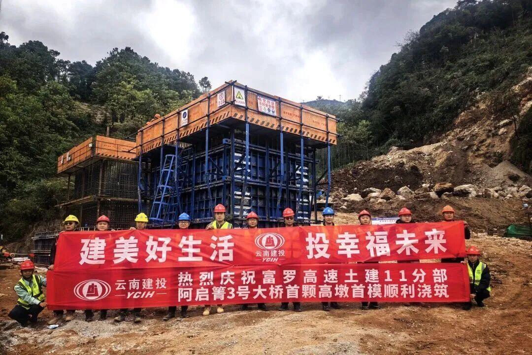 近日,富罗高速公路项目阿启箐3号大桥首颗高墩首模顺利浇筑完成。