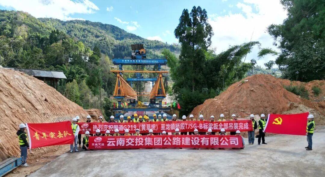 11月23日,国道G219龙陵(黄草坝)至龙镇桥段工程TJSG-B标项目T梁全部吊装完工。