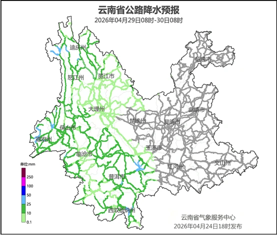 云南省气象台4月24日18时发布重要天气预报:受低涡切变和冷空气共同影响,预计4月27日至29日,我省大部分将出现降温降雨天气过程。中北部最高气温将下降4—6℃,局部地区超过8℃;全省大部分将自东向西出现中雨局部大雨、暴雨,其中,昭通市、曲靖市北部和南部、昆明市南部、楚雄州北部、玉溪市北部和西南部、文山州西南部、红河州南部、普洱市东部、西双版纳州东部、临沧市中西部、保山市、德宏州、怒江州、迪庆州、丽江市北部和东南部过程累计雨量30—60毫米,德宏州西部局部地区80—120毫米。伴随降雨还将出现雷电和局部地区短时强降水、大风、冰雹等强对流天气。请公众注意出行安全和防寒保暖。