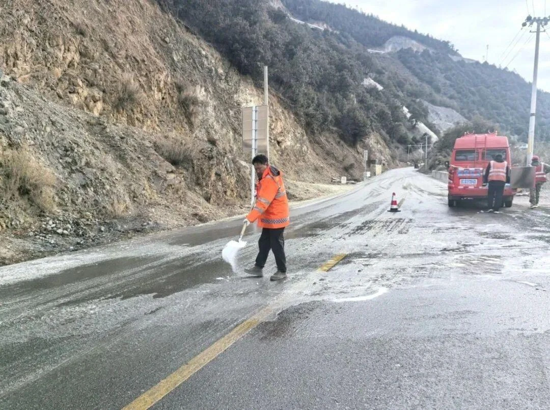 1月5日气象预警发布后,昭通公路局各单位便已全面加强公路巡查,提前布防。1月6日清晨6时45分,冰凌情况被及时发现,昭阳、彝良公路分局立即启动应急预案,精准开展防滑料和融雪剂撒布作业。