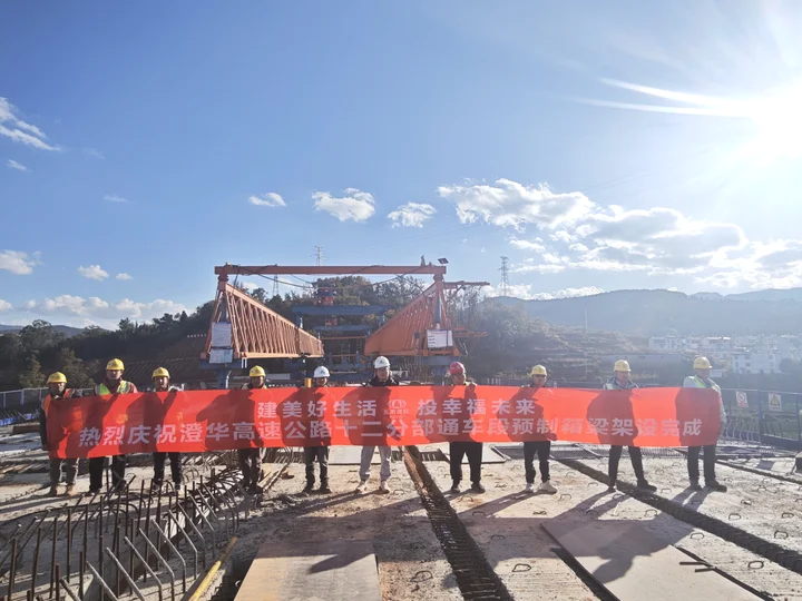 2026年1月4日,澄华高速还建华宁南互通A匝道桥梁板架设完成。