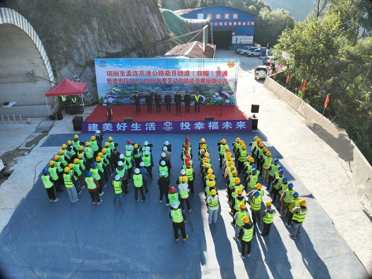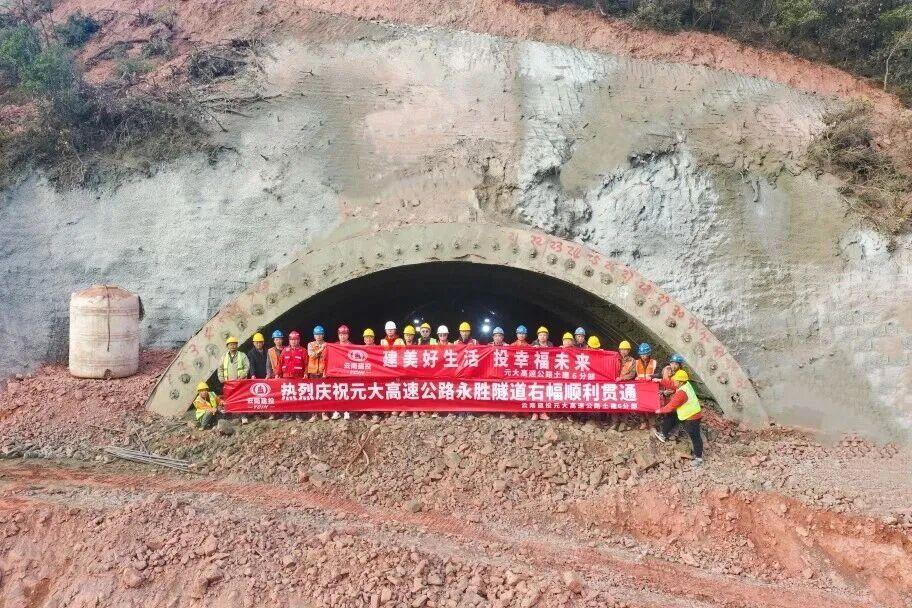 2025年12月24日,元大高速土建六分部永胜隧道右幅顺利贯通。