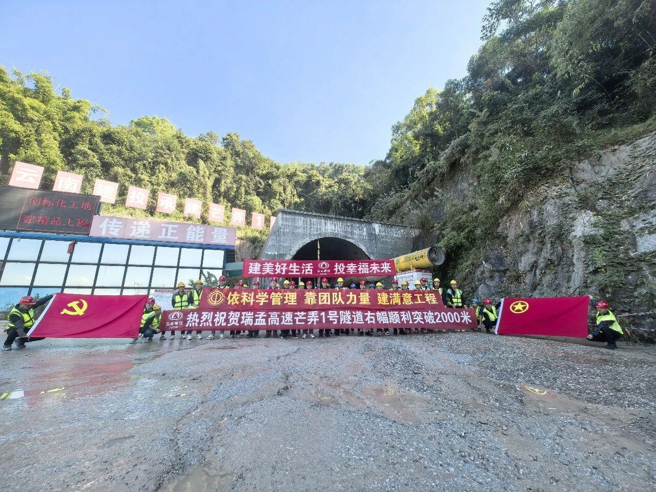 2025年12月29日,瑞孟高速公路芒弄1号隧道右幅掘进突破2000米大关,仅剩185米即可贯通。