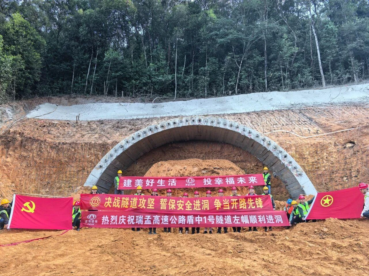 2025年12月26日,瑞孟高速公路盾中1号隧道左幅顺利实现进洞。