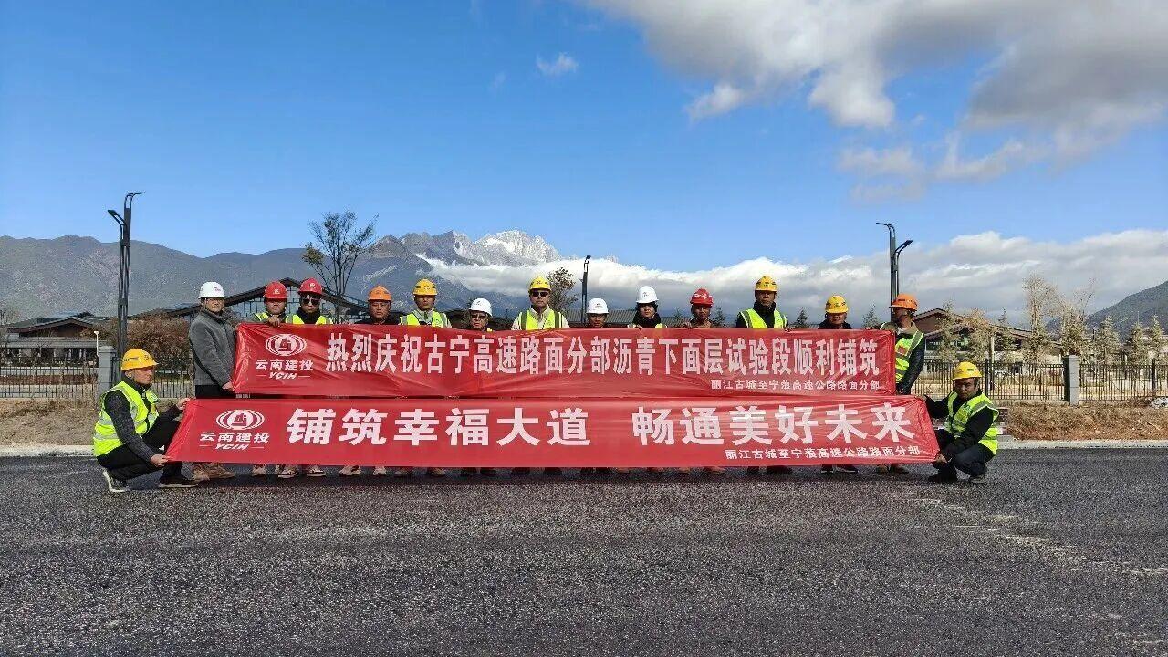 12月30日,丽江古宁高速公路项目沥青中面层试验段顺利铺筑完成。