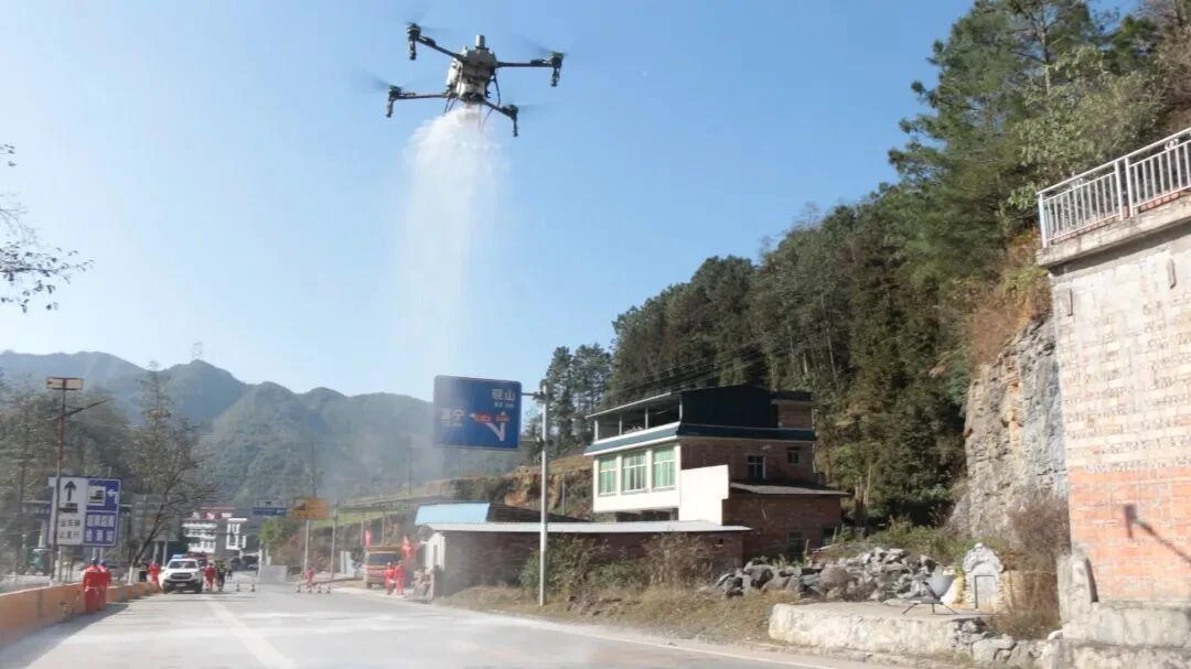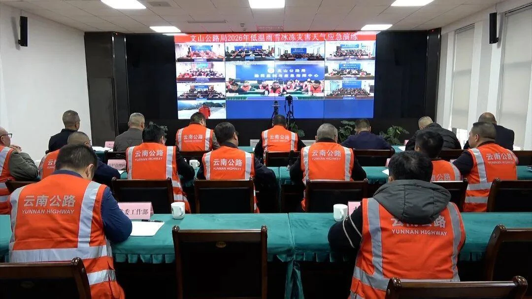 文山公路局以G246、G323 珠街镇路段大范围结冰致交通中断为演练背景,启动Ⅲ级应急响应,联动地方政府、交通执法等多部门,首次运用无人机精准泼洒融雪剂并实时传输数据,提升应急处置效能。