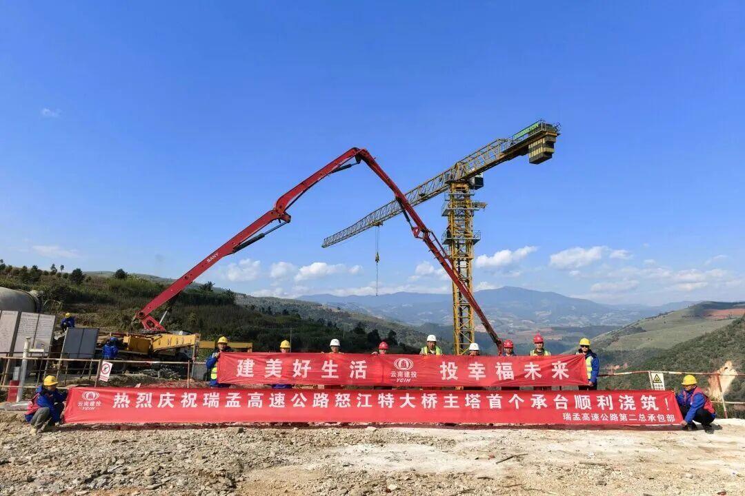 1月11日,瑞孟高速勐糯怒江特大桥主塔首个承台浇筑完成。