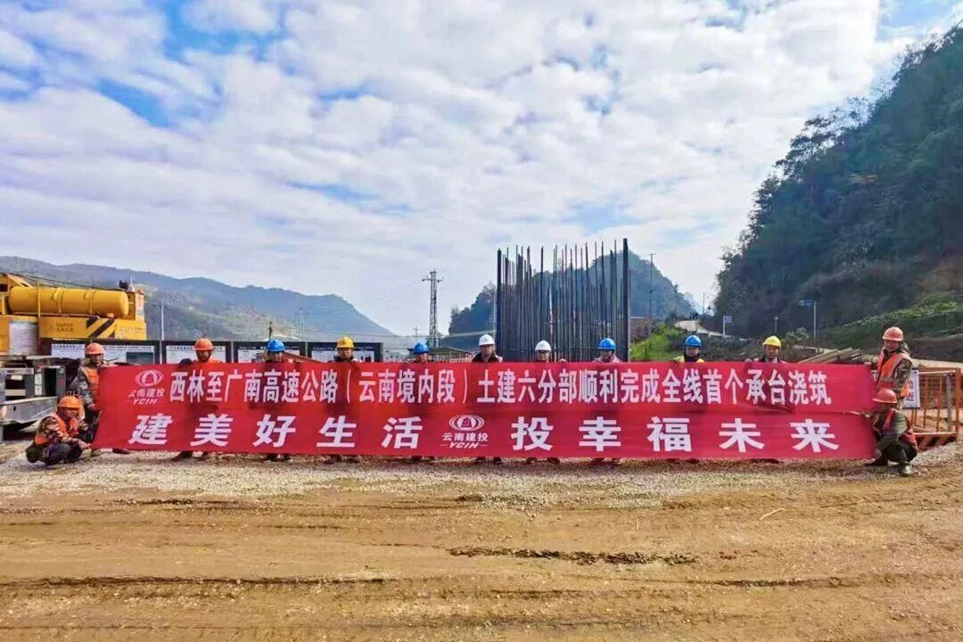 近日,西广高速(云南段)龙蚌特大桥左幅16号承台顺利完成浇筑。