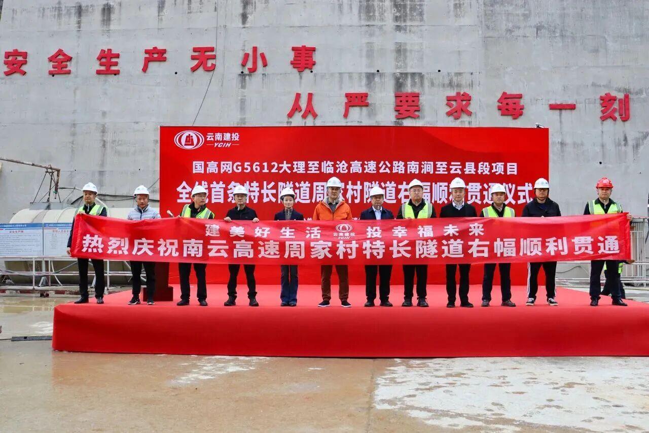 1月12日,国高网G5612大理至临沧高速公路南云段项目主线首条特长隧道——周家村隧道右幅实现贯通。