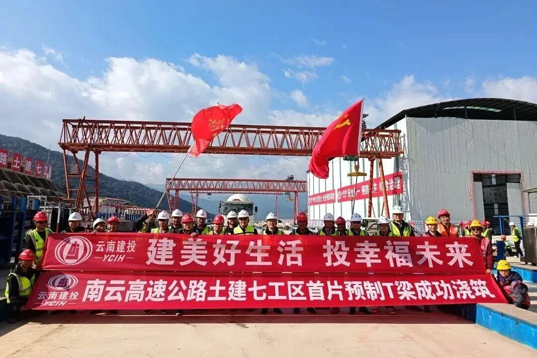 近日,南云高速土建七工区首片预制T梁顺利浇筑完成。