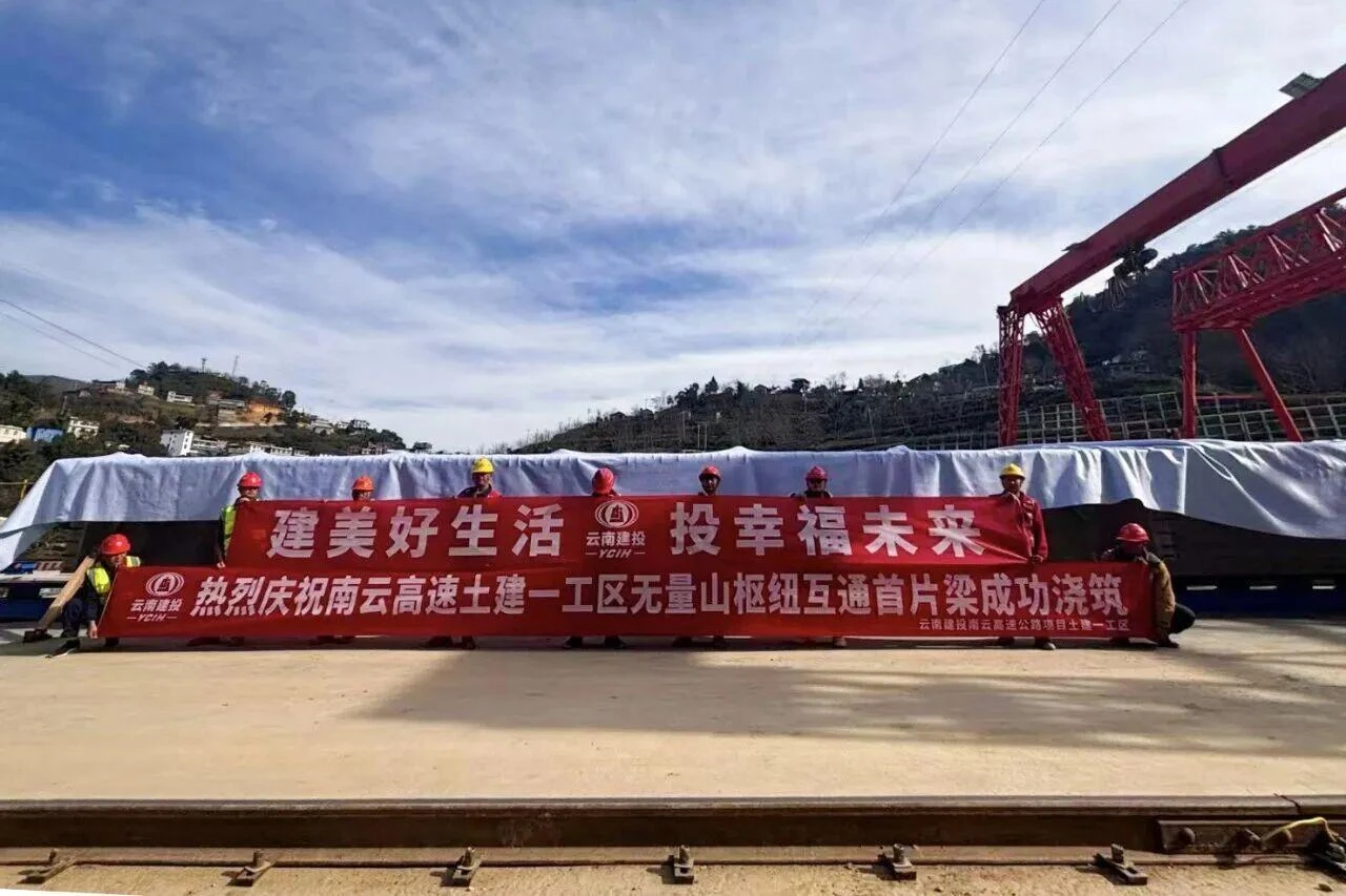 1月25日,南云高速土建一工区无量山枢纽互通A匝道1号大桥首颗墩柱、B匝道2号大桥6-2#20米首片T梁顺利完成浇筑。