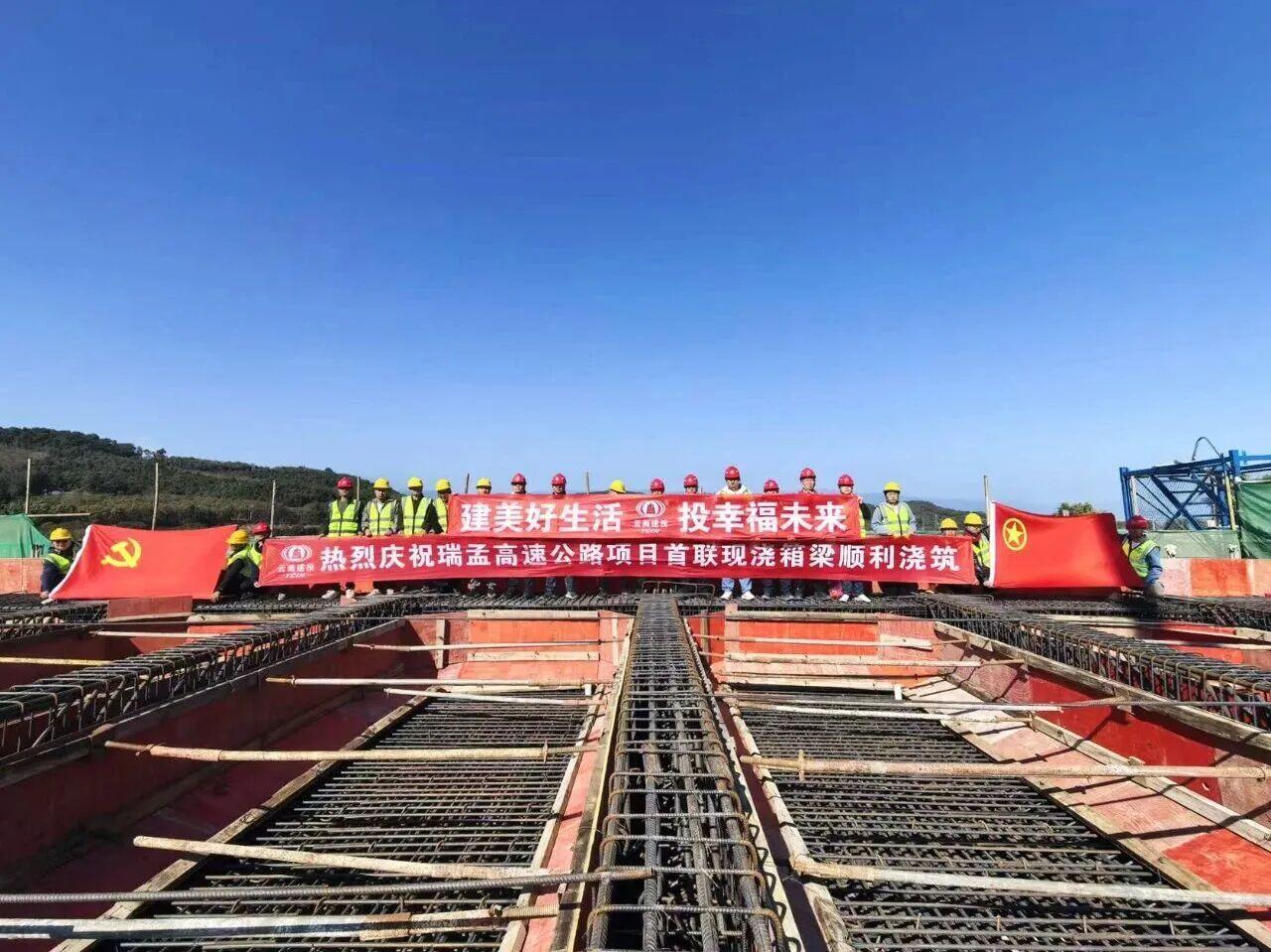 1月24日,瑞孟高速公路户育互通首联现浇箱梁顺利完成浇筑,项目建投段桥梁上部结构施工正式拉开序幕。