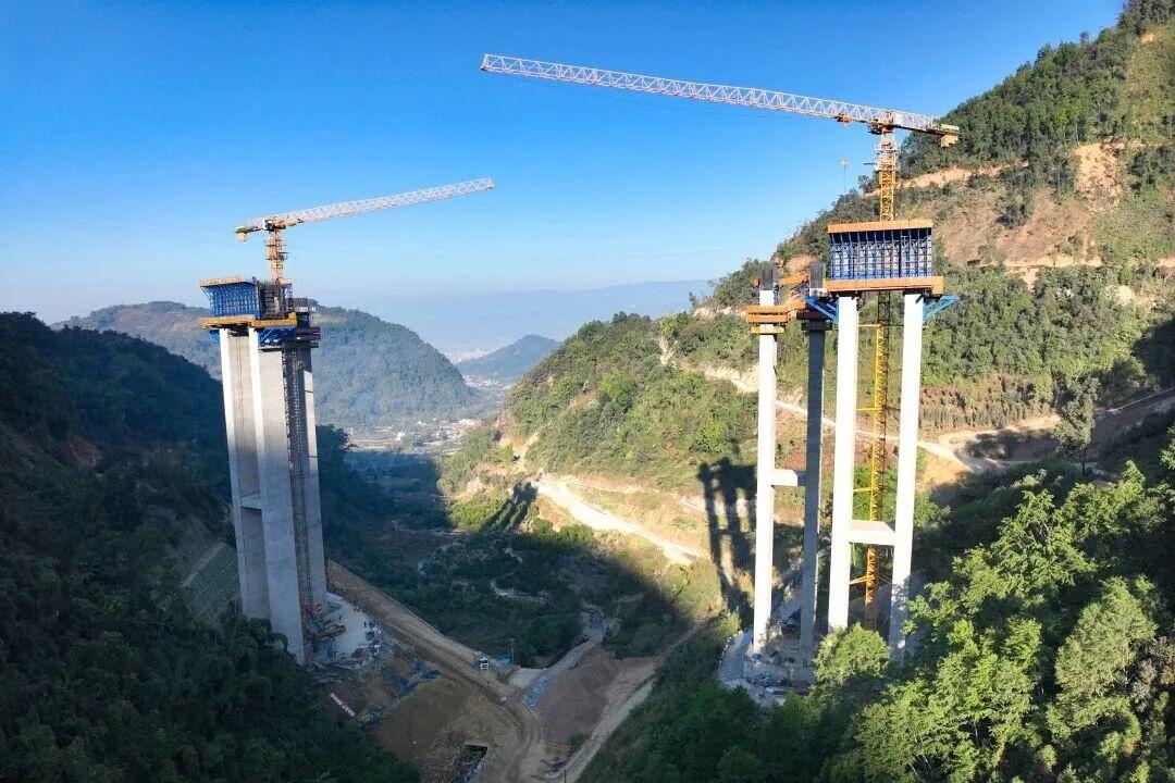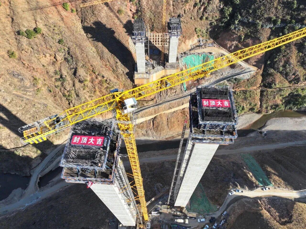 1月22日,瑞孟高速(德宏段)芒市北互通主线3号桥连续刚构主墩柱全部顺利封顶。