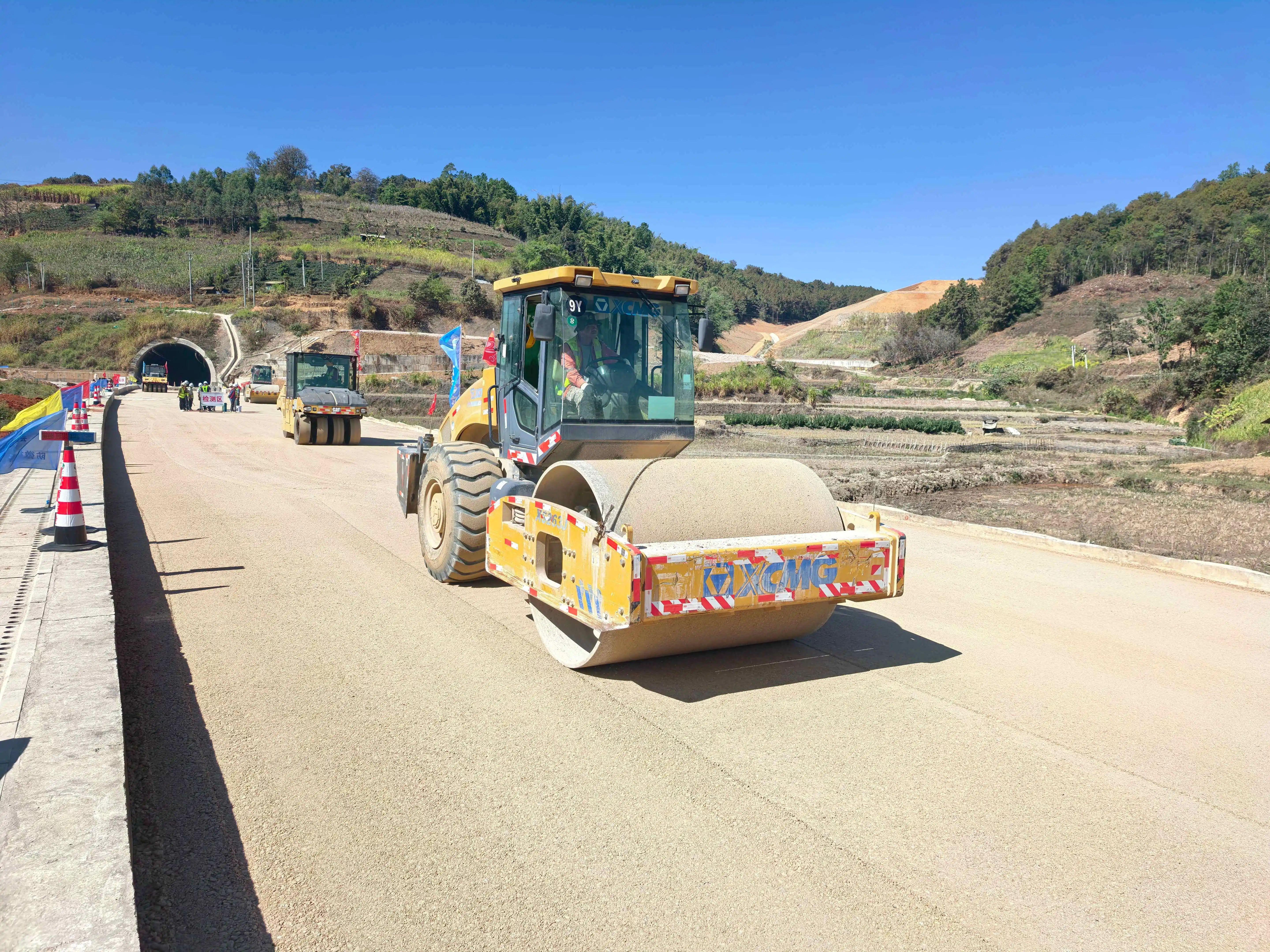 近日,孟勐高速公路级配碎石底基层试验段顺利铺筑,为后续大规模路面施工奠定了坚实基础。